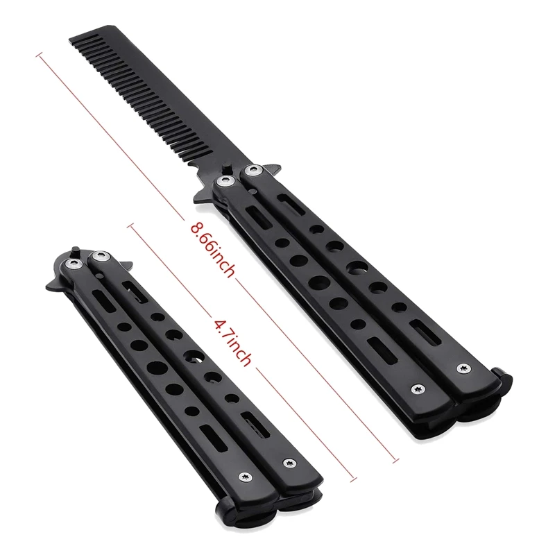 Pack of 2 Sport Outdoor Use Black Novelty Stainless Steel Butterfly Comb Hair Styling Tools