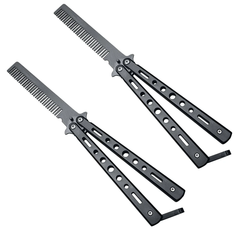 HOT SALE Pack of 2 Sport Outdoor Use Black Novelty Stainless Steel Butterfly Comb Hair Styling Tools